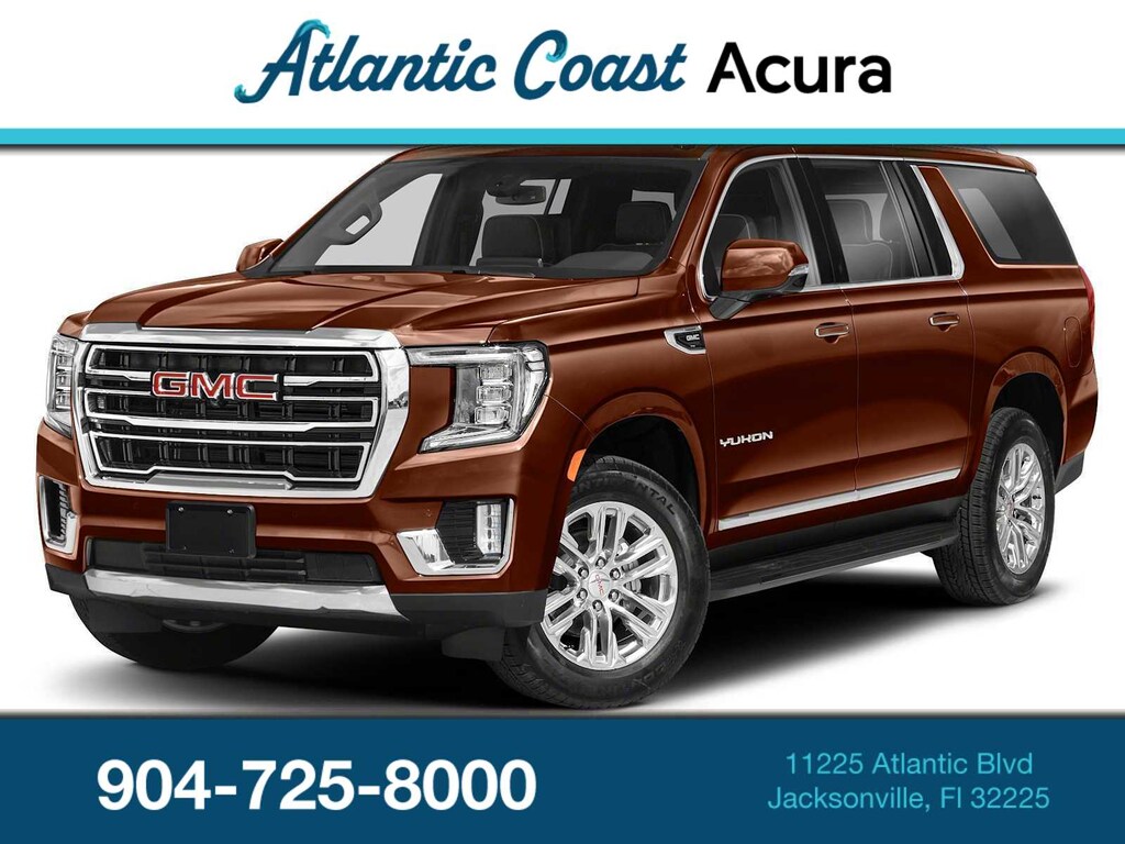 This 2022 GMC Yukon XL SLT in Redwood Metallic, features Preferred Equipment Group 4SA (2 Presets For Power Driver Seat, Automatic Stop/Start, Bose 9-Speaker Stereo Audio System Feature, Bright Chrome Bodyside Moldings, Bright Front & Rear Door Sill Plates, Chrome Door Handles w/Body-Color Strip, Hands-Free Power Programmable Rear Liftgate, Heated & Ventilated Driver & Front Passenger Seats, Heated Driver & Front Passenger Seats, Inside Rear-View Auto-Dimming Mirror, Safety Alert Seat, Start/Stop System Disable Button, Universal Home Remote, and Wireless Charging), SLT Luxury Package (2 Presets For Outside Rearview Mirrors, 3rd Row 60/40 Power-Folding Split-Bench Seat, HD Surround Vision, Heated 2nd Row Outboard Position Seats, Heated Steering Wheel, Outside Heated Power-Adjustable Mirrors, Power Release 2nd Row 60/40 Split-Folding Bench Seat, Power Tilt & Telescopic Steering Column, and Rear Pedestrian Alert), 3.23 Rear Axle Ratio, 3rd row seats: split-bench, 4-Wheel Disc Brakes, 9 Speakers, ABS brakes, Air Conditioning, Alloy wheels, AM/FM radio: SiriusXM with 360L, AM/FM Stereo, Apple CarPlay/Android Auto, Auto High-beam Headlights, Auto-dimming Rear-View mirror, Automatic Emergency Braking, Automatic temperature control, Bodyside moldings, Brake assist, Bumpers: body-color, Compass, Delay-off headlights, Driver door bin, Driver vanity mirror, Dual front impact airbags, Dual front side impact airbags, Dual-Pane Panoramic Power Sunroof, Electronic Stability Control, Emergency communication system: OnStar and GMC Connected Services capable, Following Distance Indicator, Forward Collision Alert, Four wheel independent suspension, Front & Rear Park Assist, Front anti-roll bar, Front Bucket Seats, Front Center Armrest, Front dual zone A/C, Front fog lights, Front Pedestrian Braking, Front reading lights, Fully automatic headlights, Garage door transmitter, Heated door mirrors, Heated front seats, Illuminated entry, IntelliBeam Automatic High Beam On/Off, Lane Change Alert w/Side Blind Zone Alert, Lane Keep Assist w/Lane Departure Warning, Leather steering wheel, Low tire pressure warning, Memory seat, Navigation System, Not Equipped w/4-Way Driver & Fr Pass Pwr Lumbar, Not Equipped w/Heated Steering Wheel (DISC), Not Equipped w/Steering Column Lock, Occupant sensing airbag, Outside temperature display, Overhead airbag, Overhead console, Panic alarm, Passenger door bin, Passenger vanity mirror, Perforated Leather-Appointed Seating, Power door mirrors, Power driver seat, Power Liftgate, Power passenger seat, Power Release 2nd Row Bucket Seats, Power steering, Power windows, Premium Smooth Ride Suspension, Rain sensing wipers, Rear air conditioning, Rear anti-roll bar, Rear Cross Traffic Alert, Rear reading lights, Rear seat center armrest, Rear window defroster, Rear window wiper, Remote keyless entry, Roof rack: rails only, Security system, SiriusXM w/360L, Speed control, Speed-sensing steering, Split folding rear seat, Spoiler, Steering wheel mounted audio controls, Tachometer, Telescoping steering wheel, Tilt steering wheel, Traction control, Trip computer, Variably intermittent wipers, Ventilated front seats, Voltmeter, and Wheels: 20 x 9 6-Spoke Polished Aluminum: