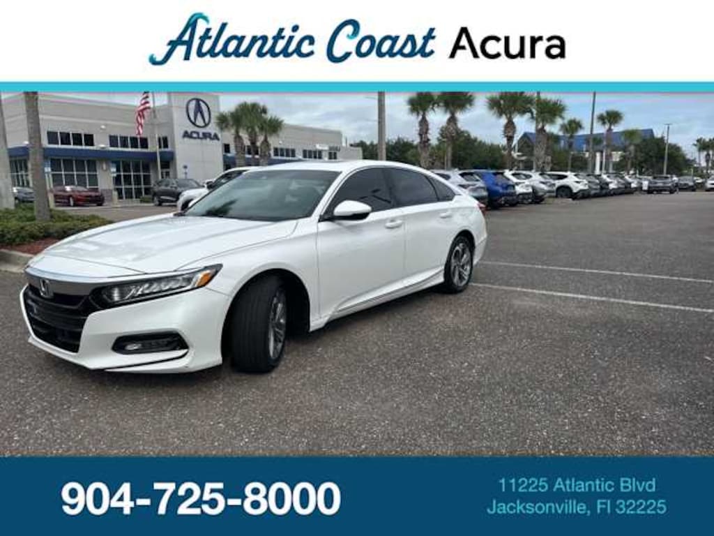 This 2020 Honda Accord EX-L in White, features 10 Speakers, 17 Machine-Finished Alloy Wheels, 4-Wheel Disc Brakes, ABS brakes, Adaptive Cruise Control: Adaptive Cruise Control (ACC) with Low-Speed Follow, Air Conditioning, Alloy wheels, AM/FM radio: SiriusXM, Apple CarPlay/Android Auto, Auto High-beam Headlights, Auto-dimming Rear-View mirror, Automatic temperature control, Blind Spot Information (BSI) System warning, Brake assist, Bumpers: body-color, Delay-off headlights, Driver door bin, Driver vanity mirror, Dual front impact airbags, Dual front side impact airbags, Electronic Stability Control, Emergency communication system: HondaLink, Exterior Parking Camera Rear, Forward collision: Collision Mitigation Braking System (CMBS) + FCW mitigation, Four wheel independent suspension, Front anti-roll bar, Front Bucket Seats, Front Center Armrest, Front dual zone A/C, Front fog lights, Front reading lights, Fully automatic headlights, Garage door transmitter: HomeLink, Heated door mirrors, Heated Front Bucket Seats, Heated front seats, Illuminated entry, Knee airbag, Lane Departure Warning System, Leather Shift Knob, Leather steering wheel, Leather-Trimmed Seats, Low tire pressure warning, Memory seat, Occupant sensing airbag, Outside temperature display, Overhead airbag, Overhead console, Panic alarm, Passenger door bin, Passenger vanity mirror, Power door mirrors, Power driver seat, Power moonroof, Power passenger seat, Power steering, Power windows, Radio data system, Radio: 450-Watt AM/FM/HD Premium Audio System, Rear anti-roll bar, Rear seat center armrest, Rear window defroster, Remote keyless entry, Security system, Speed control, Speed-sensing steering, Speed-Sensitive Wipers, Split folding rear seat, Steering wheel mounted audio controls, Tachometer, Telescoping steering wheel, Tilt steering wheel, Traction control, Trip computer, Turn signal indicator mirrors, and Variably intermittent wipers:
