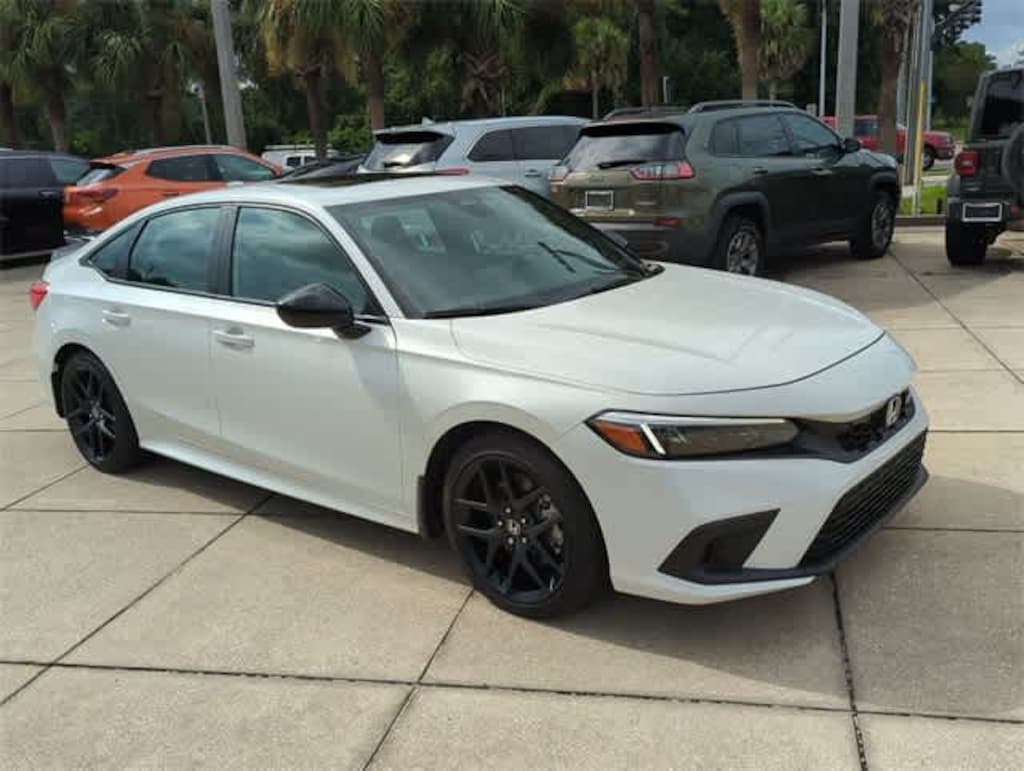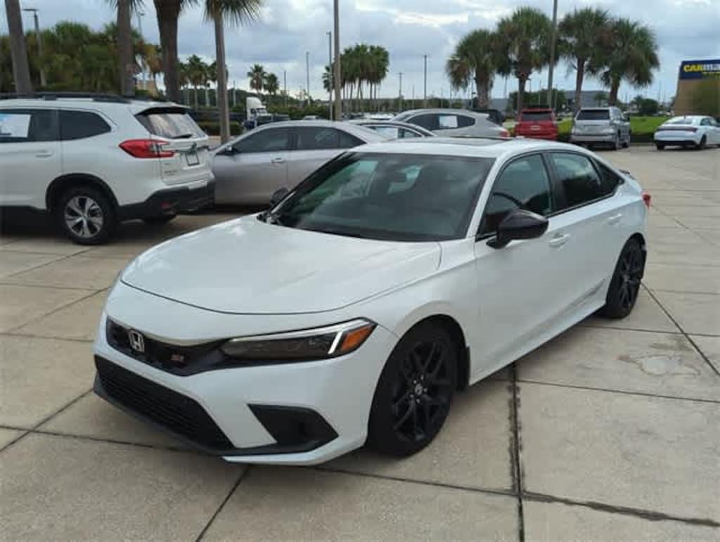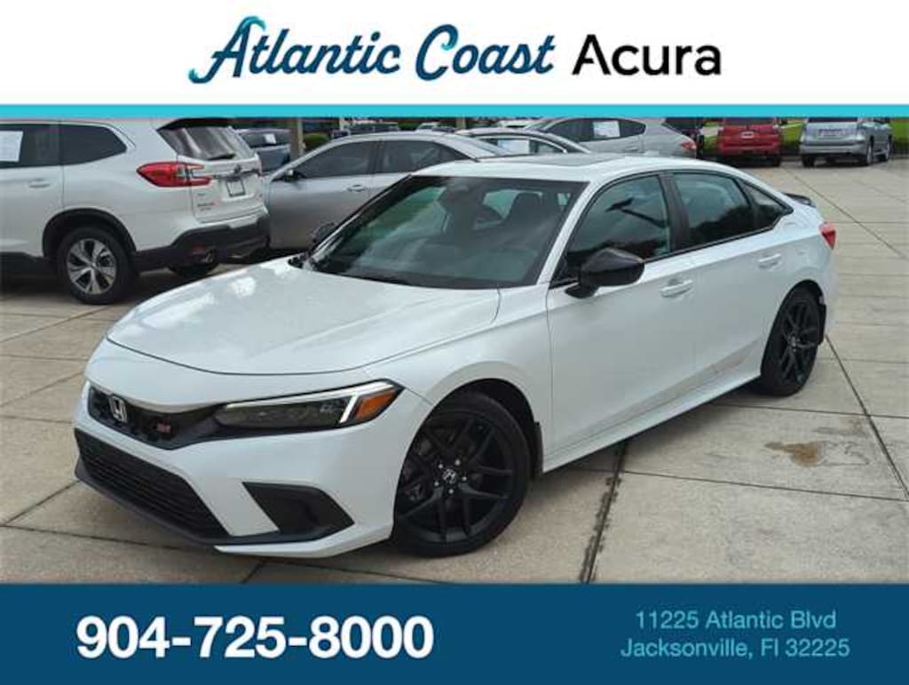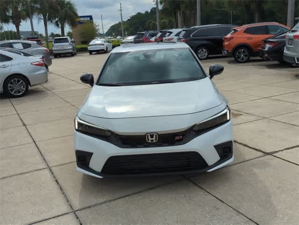 This 2022 Honda Civic Si in White, features 12 Speakers, 4-Wheel Disc Brakes, ABS brakes, Air Conditioning, Alloy wheels, AM/FM radio, Apple CarPlay/Android Auto, Auto High-beam Headlights, Automatic temperature control, Blind Spot Information (BSI) System warning, Bose Premium Sound System, Brake assist, Bumpers: body-color, Delay-off headlights, Driver door bin, Driver vanity mirror, Dual front impact airbags, Dual front side impact airbags, Electronic Stability Control, Exterior Parking Camera Rear, Fabric Seat Trim, Forward collision: Collision Mitigation Braking System (CMBS) + FCW mitigation, Four wheel independent suspension, Front anti-roll bar, Front Bucket Seats, Front Center Armrest, Front dual zone A/C, Front reading lights, Fully automatic headlights, Heated door mirrors, Illuminated entry, Knee airbag, Leather Shift Knob, Leather steering wheel, Low tire pressure warning, Occupant sensing airbag, Outside temperature display, Overhead airbag, Overhead console, Panic alarm, Passenger door bin, Passenger vanity mirror, Power door mirrors, Power moonroof, Power steering, Power windows, Radio data system, Rear anti-roll bar, Rear seat center armrest, Rear side impact airbag, Rear window defroster, Remote keyless entry, Security system, Speed control, Speed-sensing steering, Split folding rear seat, Spoiler, Steering wheel mounted audio controls, Tachometer, Telescoping steering wheel, Tilt steering wheel, Traction control, Trip computer, Variably intermittent wipers, and Wheels: 18 Matte Black Alloy: