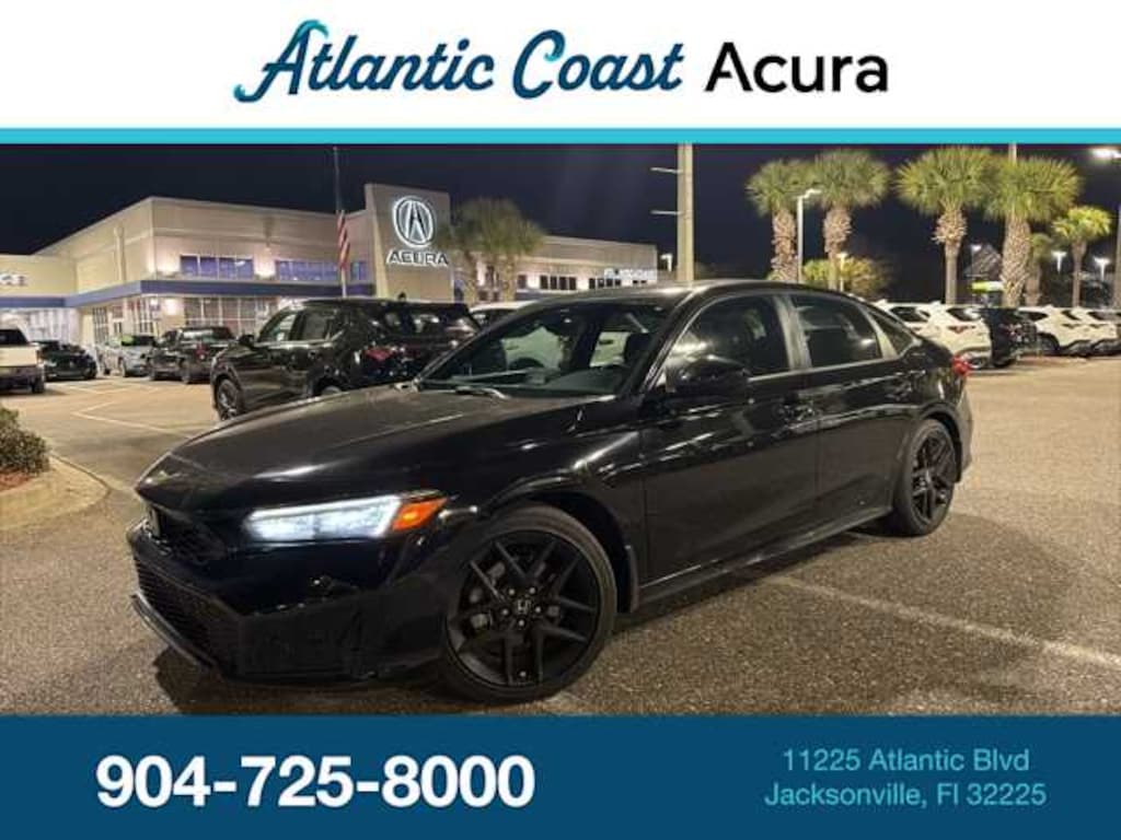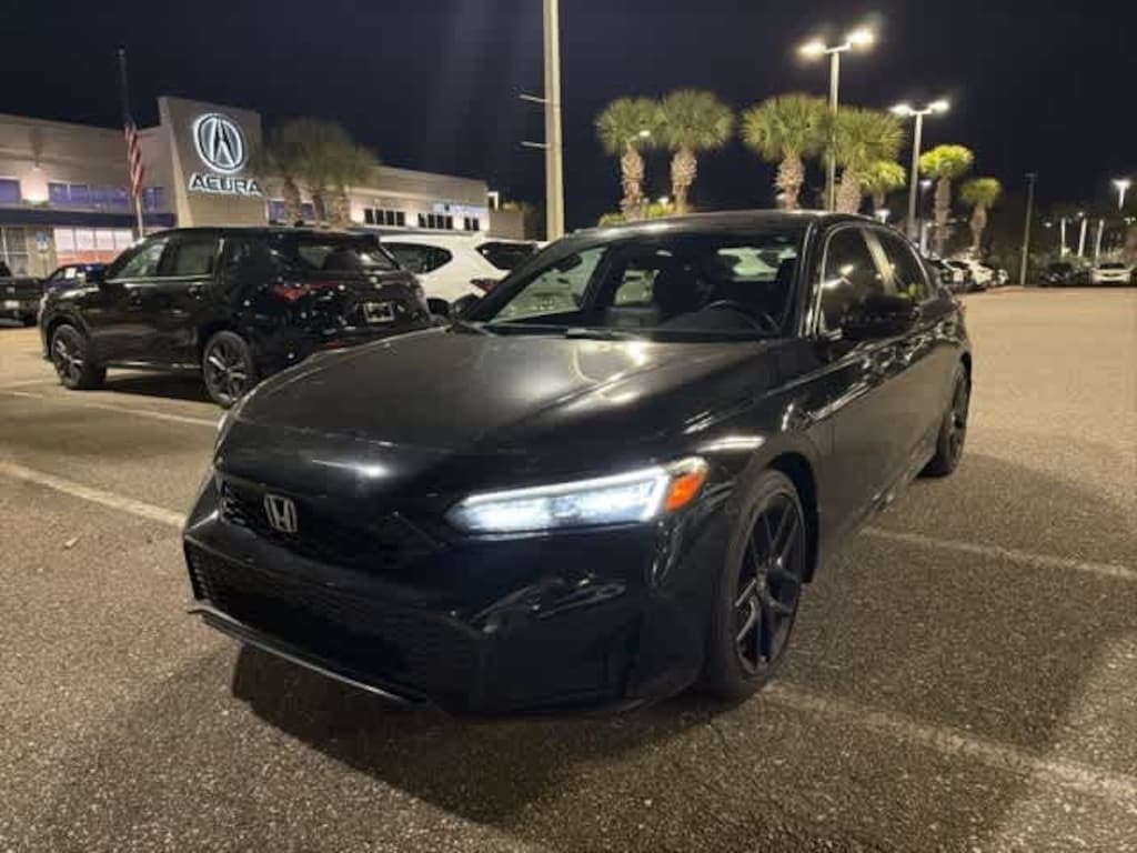 This 2025 Honda Civic Hybrid Sport in Crystal Black Pearl, features 4-Wheel Disc Brakes, 8 Speakers, ABS brakes, Adaptive Cruise Control: Adaptive Cruise Control (ACC) with Low-Speed Follow, Air Conditioning, Alloy wheels, AM/FM radio, Apple CarPlay/Android Auto, Auto High-beam Headlights, Automatic temperature control, Blind Spot Information (BSI) System warning, Brake assist, Bumpers: body-color, Cloth/Leatherette Seat Trim, Delay-off headlights, Driver door bin, Driver vanity mirror, Dual front impact airbags, Dual front side impact airbags, Electronic Stability Control, Emergency communication system: HondaLink, Exterior Parking Camera Rear, Four wheel independent suspension, Front anti-roll bar, Front Bucket Seats, Front Center Armrest, Front dual zone A/C, Front reading lights, Fully automatic headlights, Heated door mirrors, Heated Front Bucket Seats, Heated front seats, Illuminated entry, Knee airbag, Leather Shift Knob, Leather steering wheel, Low tire pressure warning, Occupant sensing airbag, Outside temperature display, Overhead airbag, Panic alarm, Passenger door bin, Passenger vanity mirror, Power door mirrors, Power moonroof, Power steering, Power windows, Radio data system, Radio: 180-Watt Audio System, Rear anti-roll bar, Rear seat center armrest, Rear side impact airbag, Rear window defroster, Remote keyless entry, Security system, Speed control, Speed-sensing steering, Split folding rear seat, Steering wheel mounted audio controls, Tachometer, Telescoping steering wheel, Tilt steering wheel, Traction control, Trip computer, Variably intermittent wipers, and Wheels: 18 Gloss Black Alloy: