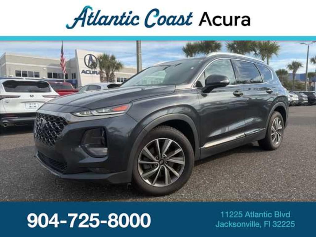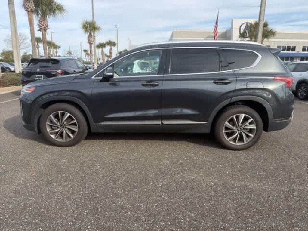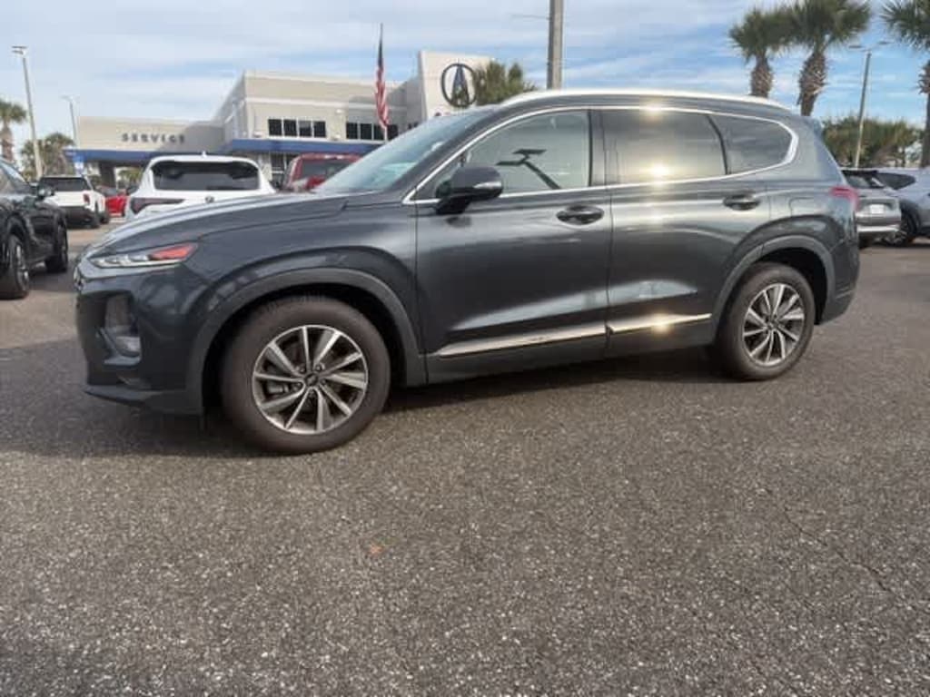 This 2020 Hyundai Santa Fe Limited in Portofino Gray, features Option Group 01, 12 Speakers, 18 x 7.5J Alloy Wheels, 4-Wheel Disc Brakes, ABS brakes, Air Conditioning, Alloy wheels, AM/FM radio: SiriusXM, Apple CarPlay & Android Auto, Auto High-beam Headlights, Auto-dimming Rear-View mirror, Automatic temperature control, Axle Ratio 3.798, Brake assist, Bumpers: body-color, Compass, Delay-off headlights, Driver door bin, Driver vanity mirror, Dual front impact airbags, Dual front side impact airbags, Electronic Stability Control, Emergency communication system, First Aid Kit, Four wheel independent suspension, Front anti-roll bar, Front Bucket Seats, Front Center Armrest, Front dual zone A/C, Front fog lights, Front reading lights, Fully automatic headlights, Garage door transmitter: HomeLink, Heads-Up Display, Heated & Ventilated Front Bucket Seats, Heated door mirrors, Heated front seats, Heated rear seats, Heated steering wheel, Illuminated entry, Leather Seating Surface, Leather Shift Knob, Leather steering wheel, Low tire pressure warning, Memory seat, Navigation System, Occupant sensing airbag, Outside temperature display, Overhead airbag, Overhead console, Panic alarm, Passenger door bin, Passenger vanity mirror, Power door mirrors, Power driver seat, Power Liftgate, Power moonroof, Power passenger seat, Power steering, Power windows, Radio: Infinity Premium AM/FM/MP3 Display Audio, Rain sensing wipers, Rear anti-roll bar, Rear seat center armrest, Rear window defroster, Rear window wiper, Remote keyless entry, Security system, Speed control, Speed-sensing steering, Split folding rear seat, Spoiler, Steering wheel mounted audio controls, Tachometer, Telescoping steering wheel, Tilt steering wheel, Tow Hitch, Traction control, Trip computer, Turn signal indicator mirrors, Variably intermittent wipers, Ventilated front seats, and Wheel Locks: