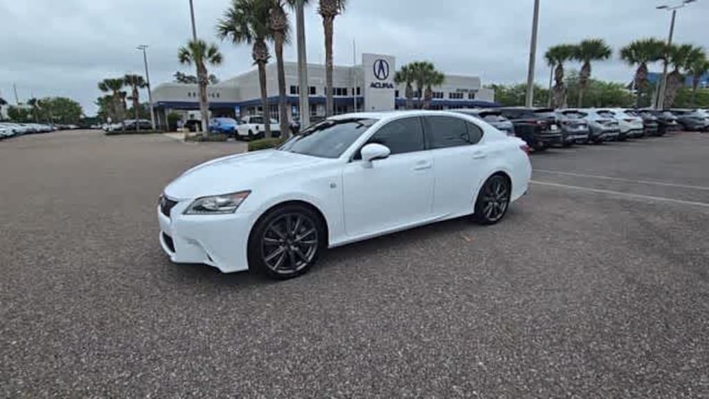 This 2015 Lexus GS 350 in Ultra White, features 12 Speakers, 4-Wheel Disc Brakes, ABS brakes, Air Conditioning, Alloy wheels, AM/FM radio: SiriusXM, Anti-whiplash front head restraints, Auto tilt-away steering wheel, Auto-dimming door mirrors, Auto-dimming Rear-View mirror, Automatic temperature control, Brake assist, Bumpers: body-color, CD player, Compass, Delay-off headlights, Driver door bin, Driver vanity mirror, Dual front impact airbags, Dual front side impact airbags, DVD-Audio, Electronic Stability Control, Emergency communication system: Safety Connect, Exterior Parking Camera Rear, F Sport Leather, Four wheel independent suspension, Front anti-roll bar, Front Bucket Seats, Front Center Armrest, Front dual zone A/C, Front fog lights, Front reading lights, Fully automatic headlights, Garage door transmitter: HomeLink, Genuine wood console insert, Genuine wood dashboard insert, Genuine wood door panel insert, Heated door mirrors, High-Intensity Discharge Headlights, Illuminated entry, Knee airbag, Leather Shift Knob, Leather steering wheel, Leather-Trimmed Seats, Low tire pressure warning, Memory seat, Occupant sensing airbag, Outside temperature display, Overhead airbag, Overhead console, Panic alarm, Passenger door bin, Passenger vanity mirror, Power door mirrors, Power driver seat, Power moonroof, Power passenger seat, Power steering, Power windows, Premium audio system: Lexus/Pioneer, Radio data system, Radio: Lexus Premium AM/FM/DVD/HD Audio System, Rear anti-roll bar, Rear reading lights, Rear seat center armrest, Rear side impact airbag, Rear window defroster, Remote keyless entry, Security system, Speed control, Speed-sensing steering, Speed-Sensitive Wipers, Steering wheel memory, Steering wheel mounted audio controls, Tachometer, Telescoping steering wheel, Tilt steering wheel, Traction control, Trip computer, Turn signal indicator mirrors, Variably intermittent wipers, Voltmeter, and Wheels: 18 x 8 Split 5-Spoke Alloy: