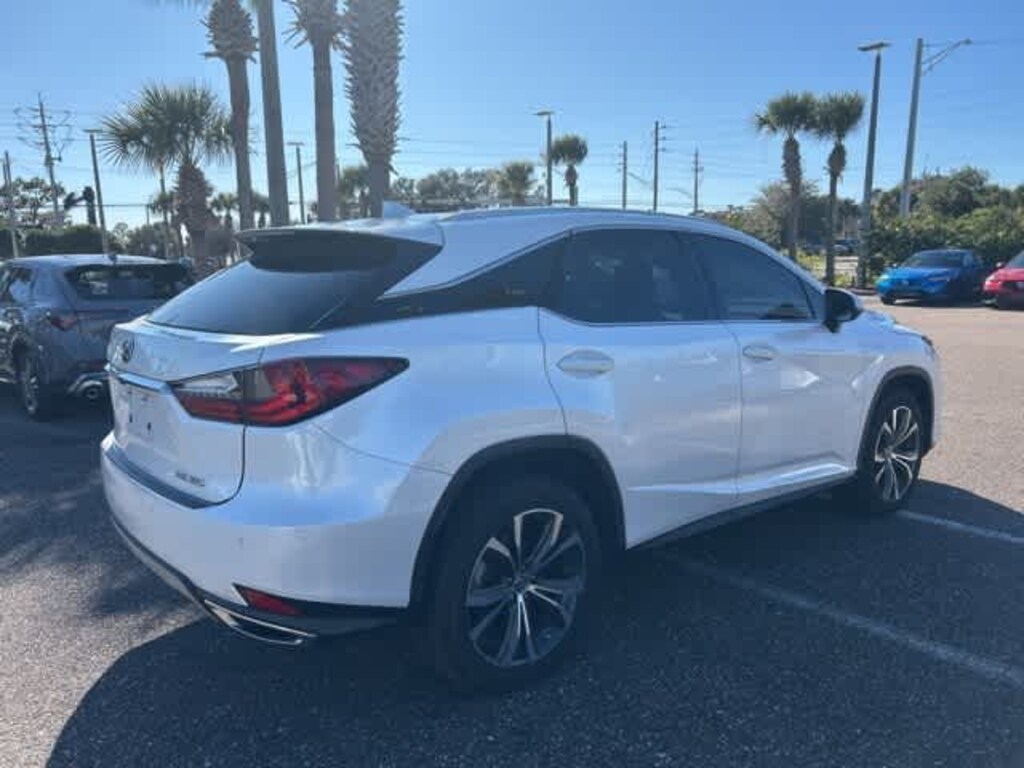 This 2021 Lexus RX 350 in White, features 18 Aluminum Wheels, 3.329 Axle Ratio, 4-Wheel Disc Brakes, 9 Speakers, ABS brakes, Air Conditioning, Alloy wheels, AM/FM radio: SiriusXM, AM/FM/CD Radio, Anti-whiplash front head restraints, Apple CarPlay/Android Auto, Auto High-beam Headlights, Auto-dimming Rear-View mirror, Automatic temperature control, Brake assist, Bumpers: body-color, CD player, Compass, Delay-off headlights, Driver door bin, Driver vanity mirror, Dual front impact airbags, Dual front side impact airbags, Electronic Stability Control, Emergency communication system, Exterior Parking Camera Rear, Four wheel independent suspension, Front anti-roll bar, Front Bucket Seats, Front Center Armrest, Front dual zone A/C, Front reading lights, Fully automatic headlights, Garage door transmitter: HomeLink, Genuine wood console insert, Genuine wood door panel insert, Heated door mirrors, Illuminated entry, Knee airbag, Leather Shift Knob, Leather steering wheel, Low tire pressure warning, NuLuxe Seat Trim, Occupant sensing airbag, Outside temperature display, Overhead airbag, Overhead console, Panic alarm, Passenger door bin, Passenger vanity mirror, Power door mirrors, Power driver seat, Power Liftgate, Power passenger seat, Power steering, Power windows, Radio data system, Rain sensing wipers, Rear anti-roll bar, Rear reading lights, Rear seat center armrest, Rear side impact airbag, Rear window defroster, Rear window wiper, Remote keyless entry, Security system, Speed control, Speed-sensing steering, Split folding rear seat, Spoiler, Steering wheel mounted audio controls, Tachometer, Telescoping steering wheel, Tilt steering wheel, Traction control, Trip computer, Turn signal indicator mirrors, and Variably intermittent wipers: