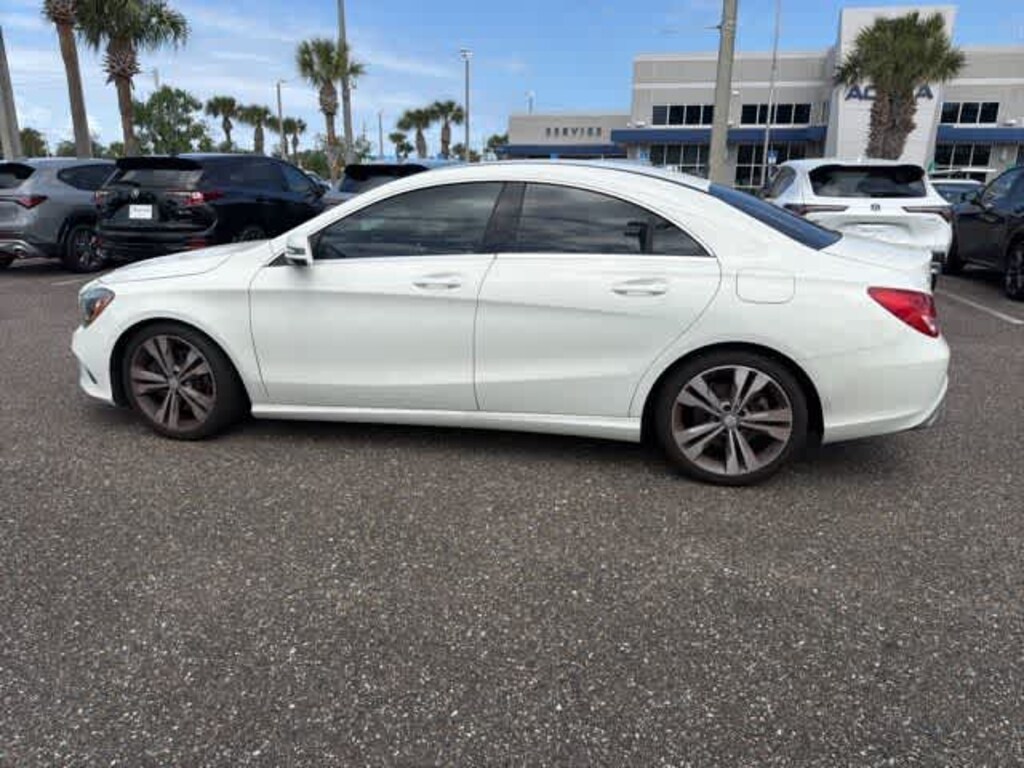 This 2018 Mercedes-Benz CLA CLA 250 in White, features 17 5-Spoke Alloy Wheels, 4-Wheel Disc Brakes, 8 Speakers, ABS brakes, Air Conditioning, Alloy wheels, AM/FM radio, Automatic temperature control, Brake assist, Bumpers: body-color, CD player, Child-Seat-Sensing Airbag, Delay-off headlights, Driver door bin, Driver vanity mirror, Dual front impact airbags, Dual front side impact airbags, Electronic Stability Control, Emergency communication system: mbrace, Exterior Parking Camera Rear, Four wheel independent suspension, Front anti-roll bar, Front Bucket Seats, Front Center Armrest, Front dual zone A/C, Front reading lights, Fully automatic headlights, Heated door mirrors, Illuminated entry, Knee airbag, Low tire pressure warning, MB-Tex Leatherette Seat Trim, Memory seat, Occupant sensing airbag, Outside temperature display, Overhead airbag, Overhead console, Panic alarm, Passenger door bin, Passenger vanity mirror, Power door mirrors, Power driver seat, Power passenger seat, Power steering, Power windows, Radio data system, Radio: Audio 20 CD w/Garmin Navigation Pre-Wiring, Rain sensing wipers, Rear anti-roll bar, Rear fog lights, Rear reading lights, Rear seat center armrest, Rear window defroster, Remote keyless entry, Security system, Speed control, Speed-sensing steering, Split folding rear seat, Steering wheel mounted audio controls, Tachometer, Telescoping steering wheel, Tilt steering wheel, Traction control, Trip computer, Turn signal indicator mirrors, and Variably intermittent wipers: