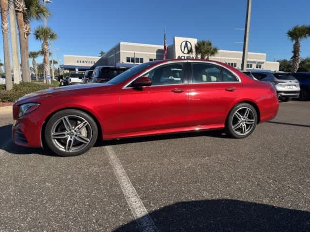 This 2019 Mercedes-Benz E-Class E 300 in Red, features Sport Package, 18 5-Spoke Wheels, 4-Way Lumbar Support, 4-Wheel Disc Brakes, 8 Speakers, ABS brakes, Air Conditioning, Alloy wheels, AM/FM radio, Android Autoî, Anti-whiplash front head restraints, Apple CarPlayî, Apple CarPlayî/Android Autoî, Auto tilt-away steering wheel, Auto-dimming door mirrors, Auto-dimming Rear-View mirror, Automatic temperature control, Brake assist, Bumpers: body-color, Burl Walnut Wood Trim, Delay-off headlights, Driver door bin, Driver vanity mirror, Dual front impact airbags, Dual front side impact airbags, Electronic Stability Control, Emergency communication system: Mercedes me connect, Exterior Parking Camera Rear, Four wheel independent suspension, Front anti-roll bar, Front Bucket Seats, Front Center Armrest, Front dual zone A/C, Front reading lights, Fully automatic headlights, Garage door transmitter: Homelink, Genuine wood dashboard insert, Genuine wood door panel insert, HD Radio w/SIRIUS Satellite & Real-Time Traffic, Head restraints memory, Heated door mirrors, Illuminated entry, Knee airbag, Leather Shift Knob, Low tire pressure warning, MB-Tex Upholstery, Memory seat, Navigation system: COMANDî, Occupant sensing airbag, Outside temperature display, Overhead airbag, Overhead console, Panic alarm, Passenger door bin, Passenger vanity mirror, Power adjustable front head restraints, Power adjustable rear head restraints, Power door mirrors, Power driver seat, Power Front Seats, Power moonroof, Power passenger seat, Power steering, Power windows, Premium audio system: COMANDî, Radio data system, Radio: COMANDî Navigation, Rain sensing wipers, Rear anti-roll bar, Rear fog lights, Rear reading lights, Rear seat center armrest, Rear window defroster, Remote keyless entry, Security system, Speed control, Speed-sensing steering, Split folding rear seat, Steering wheel memory, Steering wheel mounted audio controls, Tachometer, Telescoping steering wheel, Tilt steering wheel, Traction control, Trip computer, Turn signal indicator mirrors, Variably intermittent wipers, and Weather band radio: