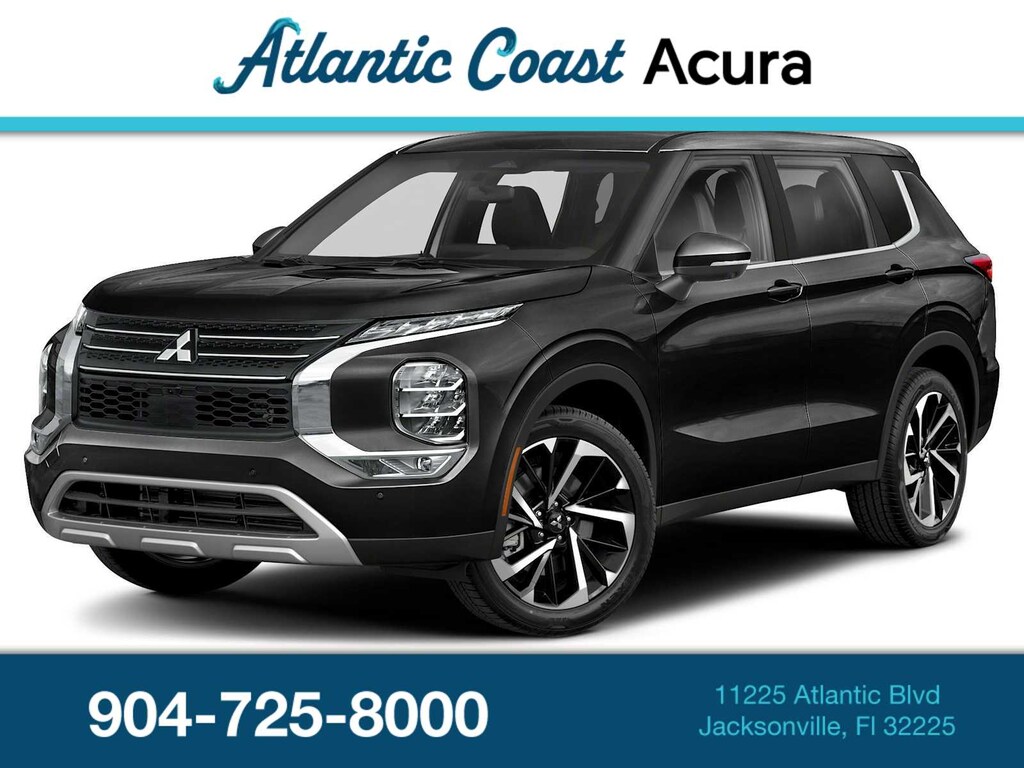 This 2024 Mitsubishi Outlander SE in Black, features 3rd row seats: split-bench, 4-Wheel Disc Brakes, 5.694 Axle Ratio, 6 Speakers, ABS brakes, Air Conditioning, Alloy wheels, AM/FM radio: SiriusXM, Android Auto & Apple CarPlay, Auto High-beam Headlights, Automatic temperature control, Brake assist, Bumpers: body-color, Driver door bin, Driver vanity mirror, Dual front impact airbags, Dual front side impact airbags, Electronic Stability Control, Emergency communication system: Mitsubishi Connect w/ 24-month trial, Exterior Parking Camera Rear, Four wheel independent suspension, Front anti-roll bar, Front Bucket Seats, Front Center Armrest w/Storage, Front dual zone A/C, Front fog lights, Front reading lights, Fully automatic headlights, Heated door mirrors, Heated Front Bucket Seats, Heated front seats, Illuminated entry, Knee airbag, Leather Shift Knob, Leather steering wheel, Low tire pressure warning, Navigation System, Occupant sensing airbag, Outside temperature display, Overhead airbag, Overhead console, Panic alarm, Passenger door bin, Passenger vanity mirror, Power door mirrors, Power driver seat, Power Liftgate, Power steering, Power windows, Radio data system, Radio: AM/FM 9.0 Navigation w/Smartphone Link, Rain sensing wipers, Rear anti-roll bar, Rear seat center armrest, Rear side impact airbag, Rear window defroster, Rear window wiper, Reclining 3rd row seat, Remote keyless entry, Security system, Speed control, Speed-Sensitive Wipers, Split folding rear seat, Spoiler, Steering wheel mounted audio controls, Synthetic Leather Seat Trim, Tachometer, Telescoping steering wheel, Tilt steering wheel, Traction control, Trip computer, Turn signal indicator mirrors, and Variably intermittent wipers: