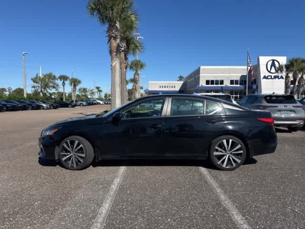 This 2020 Nissan Altima 2.5 SR in Super Black Clearcoat, features 19 Alloy Wheels, 4-Wheel Disc Brakes, 6 Speakers, ABS brakes, Air Conditioning, Alloy wheels, AM/FM radio: SiriusXM, Auto High-beam Headlights, Blind Spot Warning, Body-Colored Splash Guards, Brake assist, Bumpers: body-color, Delay-off headlights, Driver door bin, Driver vanity mirror, Dual front impact airbags, Dual front side impact airbags, Electronic Stability Control, Four wheel independent suspension, Front anti-roll bar, Front Bucket Seats, Front Center Armrest, Front reading lights, Front Sport Bucket Seats, Fully automatic headlights, Illuminated entry, Illuminated Kick Plates, Knee airbag, Leather Shift Knob, Low tire pressure warning, NissanConnect featuring Apple CarPlay and Android Auto, Occupant sensing airbag, Outside temperature display, Overhead airbag, Overhead console, Panic alarm, Passenger door bin, Passenger vanity mirror, Power door mirrors, Power driver seat, Power steering, Power windows, Radio data system, Radio: AM/FM Audio System, Rear anti-roll bar, Rear Parking Sensors, Rear reading lights, Rear seat center armrest, Rear side impact airbag, Rear window defroster, Remote keyless entry, Security system, Speed control, Speed-sensing steering, Speed-Sensitive Wipers, Split folding rear seat, Sport Seat Trim, Sport steering wheel, SR Floor Mats/Trunk Mat/Hideaway Nets, Steering wheel mounted audio controls, Tachometer, Telescoping steering wheel, Tilt steering wheel, Traction control, Trip computer, and Variably intermittent wipers: