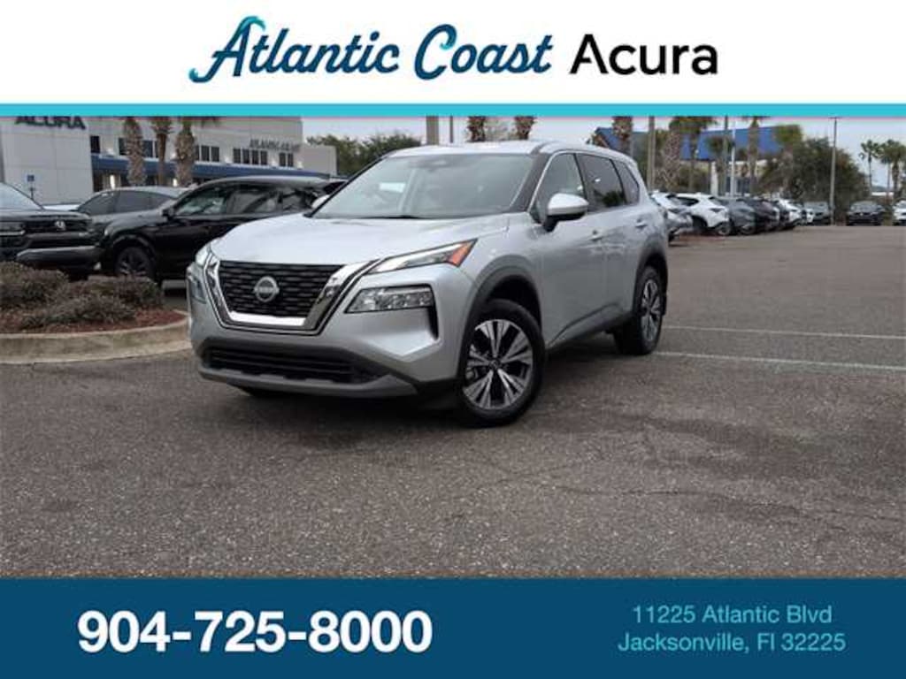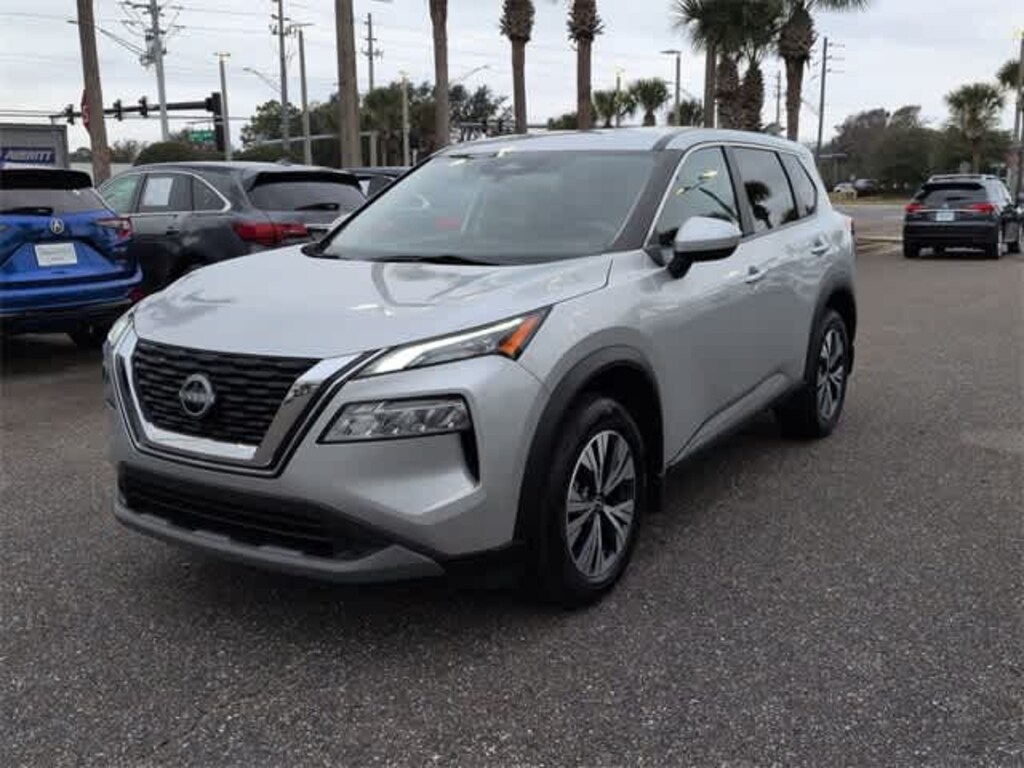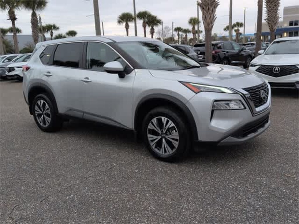 This 2023 Nissan Rogue SV in Brilliant Silver Metallic, features 18 Aluminum Alloy Wheels, 4-Wheel Disc Brakes, 5.604 Axle Ratio, 6 Speakers, ABS brakes, Air Conditioning, Alloy wheels, AM/FM Radio, AM/FM radio: SiriusXM, Auto High-beam Headlights, Automatic temperature control, Black Splash Guards (Set of 4), Brake assist, Bumpers: body-color, Chrome Rear Bumper Protector, Cloth Seat Trim, Delay-off headlights, Driver door bin, Driver vanity mirror, Dual front impact airbags, Dual front side impact airbags, Electronic Stability Control, Emergency communication system: NissanConnect Services, Floor Mats w/1-Piece Cargo Area Protector, Four wheel independent suspension, Front anti-roll bar, Front Bucket Seats, Front Center Armrest, Front dual zone A/C, Front reading lights, Fully automatic headlights, Heated door mirrors, Illuminated entry, Knee airbag, Low tire pressure warning, NissanConnect featuring Apple CarPlay and Android Auto, Occupant sensing airbag, Outside temperature display, Overhead airbag, Overhead console, Panic alarm, Passenger door bin, Passenger vanity mirror, Power door mirrors, Power driver seat, Power steering, Power windows, Radio data system, Rear anti-roll bar, Rear Parking Sensors, Rear seat center armrest, Rear side impact airbag, Rear window defroster, Rear window wiper, Remote keyless entry, Speed control, Speed-Sensitive Wipers, Split folding rear seat, Spoiler, Steering wheel mounted audio controls, Tachometer, Telescoping steering wheel, Tilt steering wheel, Traction control, Trip computer, and Variably intermittent wipers: