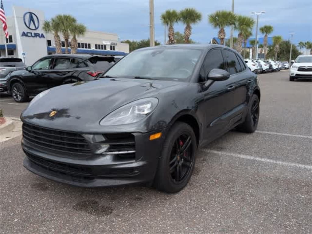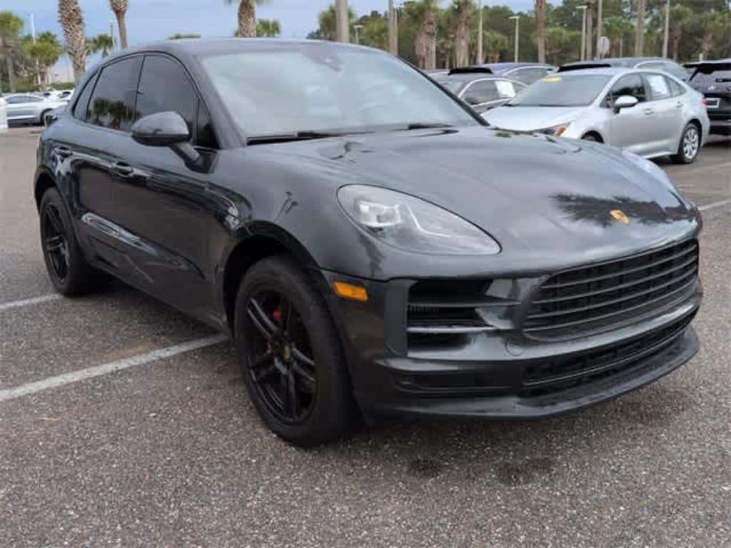This 2021 Porsche Macan S in Volcano Grey Metallic, features 10 Speakers, 4-Wheel Disc Brakes, 8-Way Power Seats, ABS brakes, Air Conditioning, Alloy wheels, AM/FM radio: SiriusXM, Apple CarPlay, Automatic temperature control, Axle Ratio: 4.13, Brake assist, Bumpers: body-color, Delay-off headlights, Driver door bin, Driver vanity mirror, Dual front impact airbags, Dual front side impact airbags, Electronic Stability Control, Emergency communication system: Car Connect Services, Exterior Parking Camera Rear, Four wheel independent suspension, Front anti-roll bar, Front Bucket Seats, Front Center Armrest, Front dual zone A/C, Front fog lights, Front reading lights, Fully automatic headlights, Garage door transmitter: HomeLink, Heated door mirrors, Illuminated entry, Leather Shift Knob, Low tire pressure warning, Memory seat, Navigation System, Occupant sensing airbag, Outside temperature display, Overhead airbag, Overhead console, Panic alarm, Partial Leather Seat Trim w/Alcantara, Passenger door bin, Passenger vanity mirror, Porsche Communication Management, Power door mirrors, Power driver seat, Power Liftgate, Power passenger seat, Power steering, Power windows, Radio data system, Rain sensing wipers, Rear air conditioning, Rear anti-roll bar, Rear reading lights, Rear seat center armrest, Rear side impact airbag, Rear window defroster, Rear window wiper, Remote keyless entry, Security system, Speed control, Speed-sensing steering, Split folding rear seat, Spoiler, Sport steering wheel, Steering wheel mounted audio controls, Tachometer, Telescoping steering wheel, Tilt steering wheel, Traction control, Trip computer, Turn signal indicator mirrors, Variably intermittent wipers, and Wheels: 19 Macan Design: