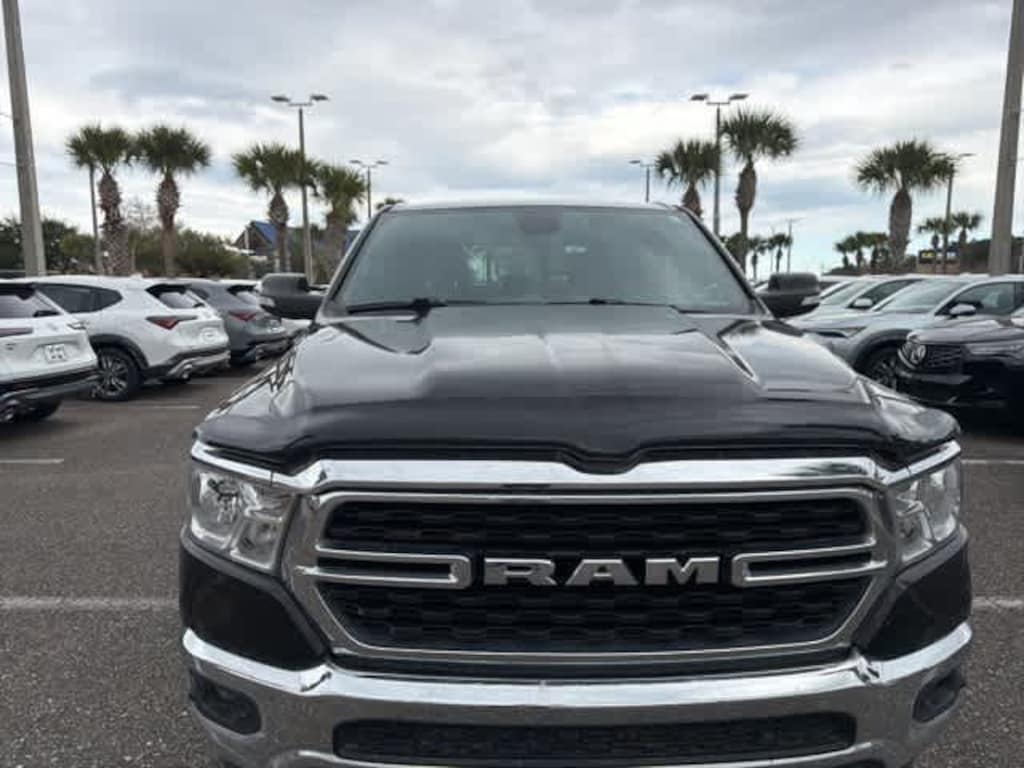 This 2022 Ram 1500 Big Horn/Lone Star in Diamond Black Crystal Pearlcoat, features Big Horn Level 2 Equipment Group (115V Auxiliary Power Outlet, 115V Auxiliary Rear Power Outlet, 2nd Row In Floor Storage Bins, 400W Inverter, 4G LTE Wi-Fi Hot Spot, 8.4 Touchscreen Display, Air Conditioning ATC w/Dual Zone Control, Apple CarPlay, Auto-Dimming Exterior Driver Mirror, Auto-Dimming Rear-View Mirror, Black Exterior Mirrors, Black Premium Power Mirrors, Bluetooth Handsfree Phone & Audio, Class IV Receiver Hitch, Cluster 7.0 TFT Color Display, Connectivity - US/Canada, Convex Wide-Angle Mirror Insert, Exterior Mirrors Courtesy Lamps, Exterior Mirrors w/Heating Element, Exterior Mirrors w/Supplemental Signals, For Details, Visit DriveUconnect.com, Global Telematics Box Module (TBM), Glove Box Lamp, Google Android Auto, GPS Antenna Input, Heated Front Seats, Heated Steering Wheel, Integrated Center Stack Radio, Media Hub w/2 Charge Only USBs, ParkSense Front/Rear Park Assist w/Stop, Power 2-Way Driver Lumbar Adjust, Power 8-Way Driver Seat, Power Adjustable Pedals, Power-Folding Mirrors, Radio: Uconnect 5 W w/8.4 Display, Rear Dome w/On/Off Switch Lamp, Rear Power Sliding Window, Rear Window Defroster, Remote Start System, Security Alarm, SiriusXM Radio Service, SiriusXM Satellite Radio, Sun Visors w/Illuminated Vanity Mirrors, Universal Garage Door Opener, and USB Host Flip), Quick Order Package 23Z Big Horn (Big Horn Badge), 3 Rear Seat Head Restraints, 4 Way Front Headrests, 4-Wheel Disc Brakes, 48V Belt Starter Generator, 6 Speakers, ABS brakes, Air Conditioning, Alloy wheels, AM/FM radio, Brake assist, Bumpers: chrome, Cloth Bench Seat, Compass, Delay-off headlights, Driver door bin, Dual front impact airbags, Dual front side impact airbags, Electronic Stability Control, Emergency communication system: SiriusXM Guardian, Front anti-roll bar, Front Center Armrest w/Storage, Front fog lights, Front reading lights, Front Seat Back Map Pockets, Front wheel independent suspension, Fully automatic headlights, Heated door mirrors, Heavy-Duty Engine Cooling, Illuminated entry, Integrated Voice Command w/Bluetooth, Leather steering wheel, Low tire pressure warning, MOPAR Front & Rear Rubber Floor Mats, Occupant sensing airbag, Outside temperature display, Overhead airbag, Overhead console, Panic alarm, ParkView Rear Back-Up Camera, Passenger door bin, Passenger vanity mirror, Power door mirrors, Power steering, Power windows, Radio data system, Radio: Uconnect 3 w/5 Display, Rear 60/40 Folding Seat, Rear anti-roll bar, Rear seat center armrest, Rear step bumper, Rear Underseat Compartment Storage (DISC), Remote keyless entry, Speed control, Split folding rear seat, Steering wheel mounted audio controls, Tachometer, Telescoping steering wheel, Tilt steering wheel, Traction control, Trip computer, Variably intermittent wipers, Voltmeter, Wheels: 18 x 8 Cast-Aluminum Painted, and Wheels: 20 x 9 Aluminum Chrome Clad (WRK):