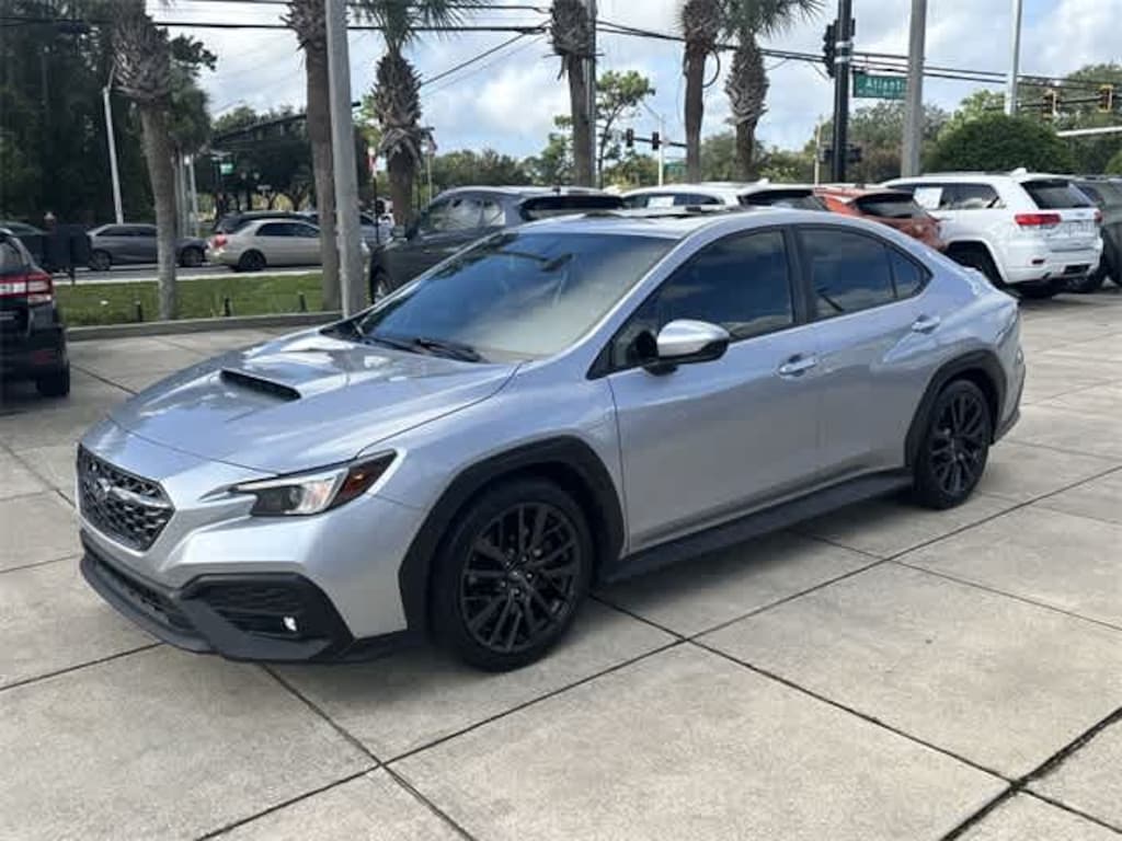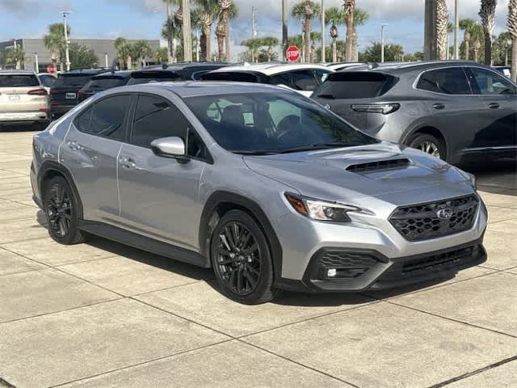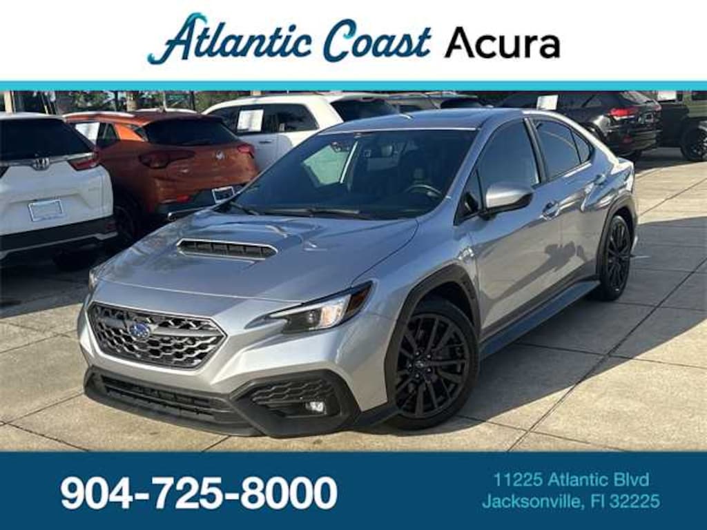 This 2022 Subaru WRX Premium in Ice Silver Metallic, features harman kardon & Moonroof (harman/kardon Speaker System and Power Tilt Up Moonroof), Wheels: 18 x 8.5 Dark Gray Finish Alum Alloy, 4-Wheel Disc Brakes, 6 Speakers, ABS brakes, Air Conditioning, All-Weather Floor Liners, Alloy wheels, AM/FM radio: SiriusXM, Auto High-beam Headlights, Auto-Dimming Mirror w/Compass & HomeLink, Auto-dimming Rear-View mirror, Automatic temperature control, Brake assist, Bumpers: body-color, Cloth Upholstery w/Red Stitching, Driver door bin, Driver vanity mirror, Dual front impact airbags, Dual front side impact airbags, Electronic Stability Control, Emergency communication system: STARLINK Safety and Security (Subscription Required), Exterior Parking Camera Rear, Four wheel independent suspension, Front anti-roll bar, Front Bucket Seats, Front Center Armrest, Front dual zone A/C, Front fog lights, Front reading lights, Fully automatic headlights, Heated door mirrors, Heated front seats, Illuminated entry, Knee airbag, Leather Shift Knob, Leather steering wheel, LED Upgrade - Map & Dome Lights, Low tire pressure warning, Occupant sensing airbag, Outside temperature display, Overhead airbag, Overhead console, Panic alarm, Passenger door bin, Passenger vanity mirror, Performance Design Heated Front Bucket Seats, Power door mirrors, Power steering, Power windows, Radio data system, Radio: Subaru STARLINK 11.6 Multimedia Plus Sys, Rear anti-roll bar, Rear seat center armrest, Rear window defroster, Remote keyless entry, Security system, Speed control, Speed-sensing steering, Split folding rear seat, Spoiler, Sport steering wheel, STARLINK/Apple CarPlay/Android Auto, Steering wheel mounted audio controls, Tachometer, Telescoping steering wheel, Tilt steering wheel, Traction control, Trip computer, and Variably intermittent wipers:
