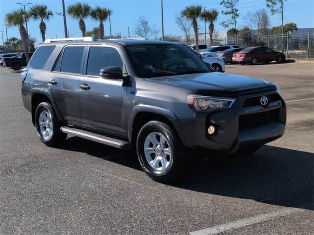 This 2017 Toyota 4Runner SR5 in Gray, features 17 x 7.0 6-Spoke Alloy Wheels, ABS brakes, Alloy wheels, Electronic Stability Control, Heated door mirrors, Illuminated entry, Low tire pressure warning, Remote keyless entry, Traction control, 3.727 Axle Ratio, 4-Wheel Disc Brakes, 8 Speakers, Air Conditioning, AM/FM radio: SiriusXM, Anti-whiplash front head restraints, Brake assist, Bumpers: body-color, CD player, Driver door bin, Driver vanity mirror, Dual front impact airbags, Dual front side impact airbags, Emergency communication system: Safety Connect, Exterior Parking Camera Rear, Front anti-roll bar, Front Bucket Seats, Front Center Armrest, Front fog lights, Front reading lights, Front wheel independent suspension, Knee airbag, Leather Shift Knob, Leather steering wheel, Low Fabric Seat Trim, Occupant sensing airbag, Outside temperature display, Overhead airbag, Overhead console, Panic alarm, Passenger door bin, Passenger vanity mirror, Power door mirrors, Power driver seat, Power steering, Power windows, Radio: Entune Audio Plus, Rear anti-roll bar, Rear seat center armrest, Rear window defroster, Rear window wiper, Roof rack: rails only, Security system, Speed control, Speed-sensing steering, Split folding rear seat, Spoiler, Steering wheel mounted audio controls, Tachometer, Telescoping steering wheel, Tilt steering wheel, Trip computer, and Variably intermittent wipers: