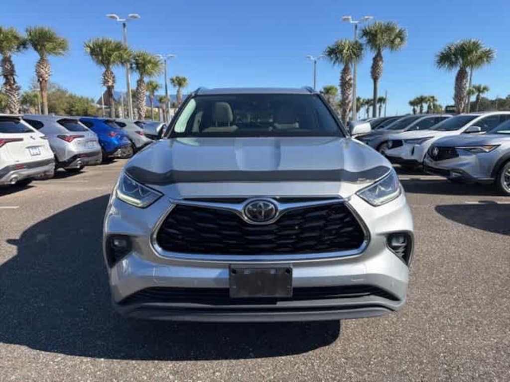 This 2021 Toyota Highlander Limited in Silver, features 11 Speakers, 20 Alloy Wheels, 3.003 Axle Ratio, 3rd row seats: split-bench, 4-Wheel Disc Brakes, ABS brakes, Air Conditioning, Alloy wheels, AM/FM radio: SiriusXM, Apple CarPlay/Android Auto, Auto High-beam Headlights, Auto-dimming Rear-View mirror, Automatic temperature control, Brake assist, Bumpers: body-color, Chrome wheels, Delay-off headlights, Driver door bin, Driver vanity mirror, Dual front impact airbags, Dual front side impact airbags, Electronic Stability Control, Emergency communication system: Safety Connect with 1-year trial, Exterior Parking Camera Rear, Four wheel independent suspension, Front anti-roll bar, Front Bucket Seats, Front Center Armrest, Front dual zone A/C, Front fog lights, Front reading lights, Fully automatic headlights, Garage door transmitter: HomeLink, Heated door mirrors, Heated front seats, Heated steering wheel, Heated/Ventilated Front Bucket Seats, Illuminated entry, Knee airbag, Leather Seat Trim, Leather Shift Knob, Low tire pressure warning, Memory seat, Navigation system: Dynamic Navigation (3-year trial), Occupant sensing airbag, Outside temperature display, Overhead airbag, Overhead console, Panic alarm, Passenger door bin, Passenger vanity mirror, Power door mirrors, Power driver seat, Power Liftgate, Power moonroof, Power passenger seat, Power steering, Power windows, Radio: Premium Audio w/JBL Clari-Fi, Rear air conditioning, Rear anti-roll bar, Rear reading lights, Rear window defroster, Rear window wiper, Reclining 3rd row seat, Remote keyless entry, Roof rack: rails only, Security system, Speed control, Speed-sensing steering, Split folding rear seat, Spoiler, Steering wheel mounted audio controls, Tachometer, Telescoping steering wheel, Tilt steering wheel, Traction control, Trip computer, Turn signal indicator mirrors, Variably intermittent wipers, and Ventilated front seats: