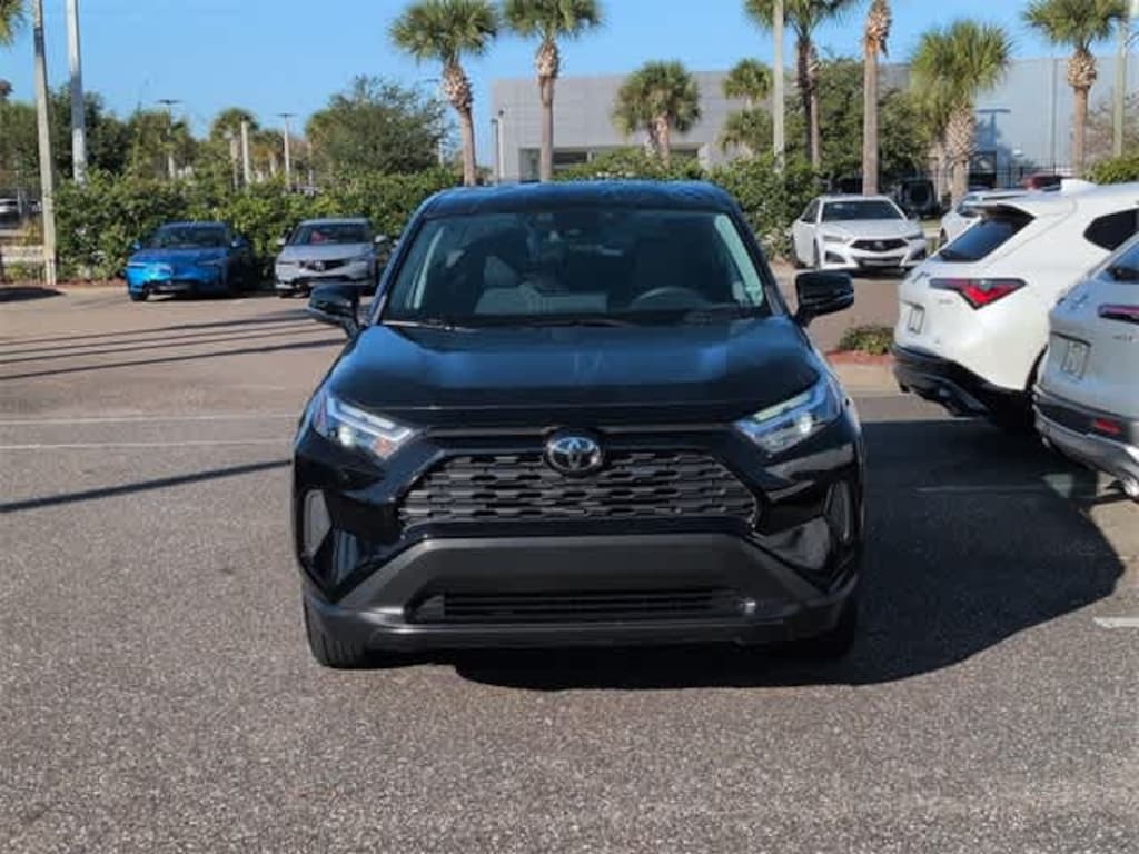 This 2023 Toyota RAV4 LE in Black, features 17 Steel Wheels, 4-Wheel Disc Brakes, 6 Speakers, ABS brakes, Air Conditioning, AM/FM radio: SiriusXM, Auto High-beam Headlights, Axle Ratio: 3.177, Brake assist, Bumpers: body-color, Driver door bin, Driver vanity mirror, Dual front impact airbags, Dual front side impact airbags, Electronic Stability Control, Emergency communication system: Safety Connect (10-year trial), Exterior Parking Camera Rear, Fabric Seat Trim, Four wheel independent suspension, Front anti-roll bar, Front Bucket Seats, Front Center Armrest, Front reading lights, Illuminated entry, Knee airbag, Low tire pressure warning, Occupant sensing airbag, Outside temperature display, Overhead airbag, Overhead console, Panic alarm, Passenger door bin, Passenger vanity mirror, Power door mirrors, Power steering, Power windows, Radio data system, Radio: AM/FM/XM Audio System, Rear anti-roll bar, Rear seat center armrest, Rear window defroster, Rear window wiper, Remote keyless entry, Speed control, Speed-sensing steering, Split folding rear seat, Spoiler, Steering wheel mounted audio controls, Tachometer, Telescoping steering wheel, Tilt steering wheel, Traction control, and Trip computer: