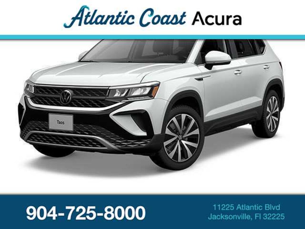 This 2024 Volkswagen Taos 1.5T SE in White, features 3.23 Axle Ratio, 4-Wheel Disc Brakes, 6 Speakers, ABS brakes, Active Blind Spot Monitor, Air Conditioning, Alloy wheels, AM/FM radio: SiriusXM with 360L, Auto High-beam Headlights, Automatic temperature control, Brake assist, Bumpers: body-color, CloudTex & Cloth Seating Surfaces, Compass, Delay-off headlights, Driver door bin, Driver vanity mirror, Dual front impact airbags, Dual front side impact airbags, Electronic Stability Control, Emergency communication system: VW Car-Net Safe & Secure 5-year, Exterior Parking Camera Rear, Front anti-roll bar, Front Bucket Seats, Front Center Armrest, Front dual zone A/C, Front reading lights, Front Strut Rear Torsion Beam Suspension, Front wheel independent suspension, Fully automatic headlights, Heated door mirrors, Heated Front Bucket Seats, Heated front seats, Heated steering wheel, Illuminated entry, Leather Shift Knob, Low tire pressure warning, Occupant sensing airbag, Outside temperature display, Overhead airbag, Overhead console, Panic alarm, Passenger door bin, Passenger vanity mirror, Power door mirrors, Power driver seat, Power steering, Power windows, Radio data system, Radio: MIB3 Composition Media AM/FM/HD, Rain sensing wipers, Rear anti-roll bar, Rear seat center armrest, Rear window defroster, Rear window wiper, Remote keyless entry, Roof rack: rails only, Security system, Speed control, Speed-sensing steering, Split folding rear seat, Spoiler, Steering wheel mounted audio controls, Tachometer, Telescoping steering wheel, Tilt steering wheel, Traction control, Trip computer, Variably intermittent wipers, and Wheels: 18 2-Tone Machined Alloy: